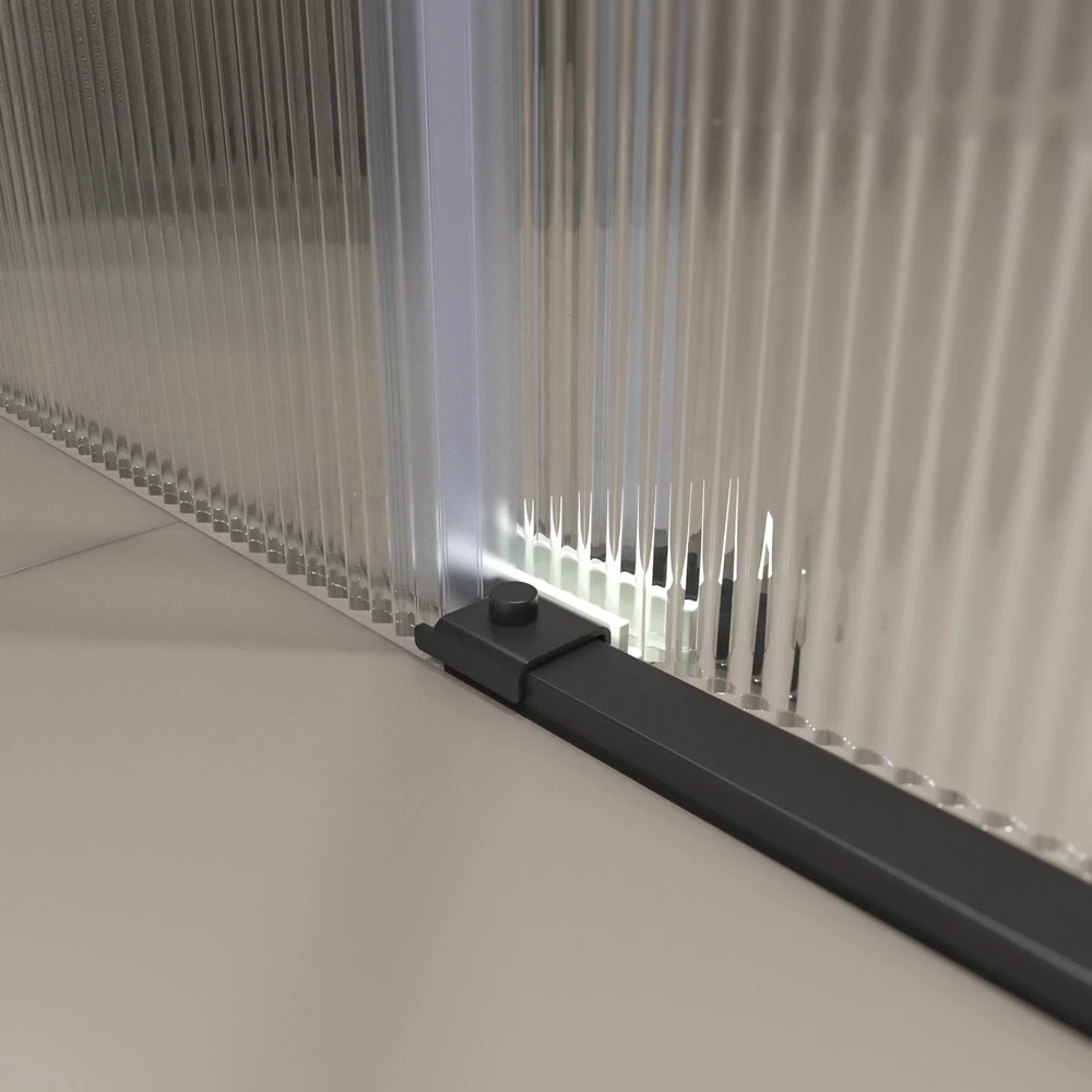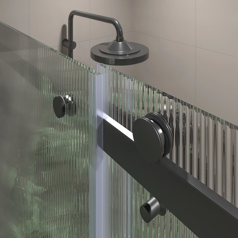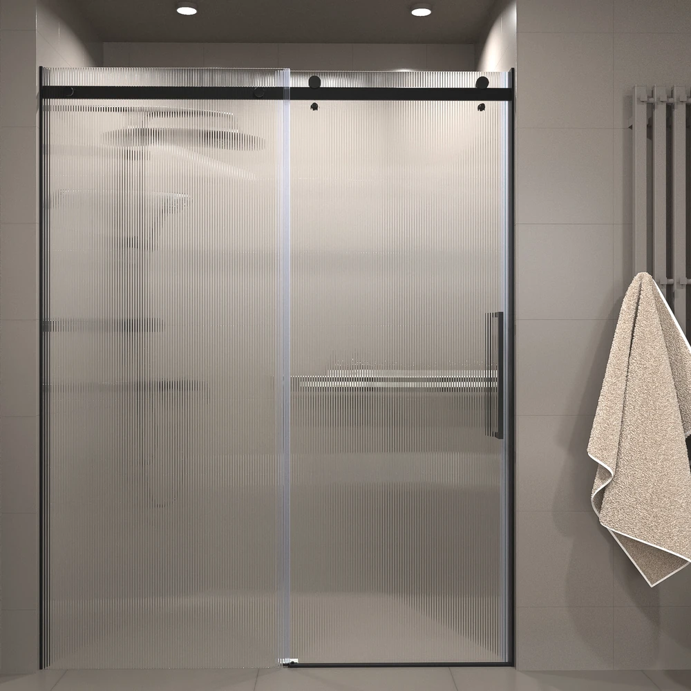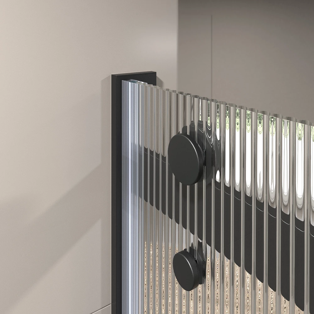 Mampara de ducha acero inoxidable LEXY frontal 1 fijo – 1 puerta corredera vidrio 8 mm acanalado NEGRO
