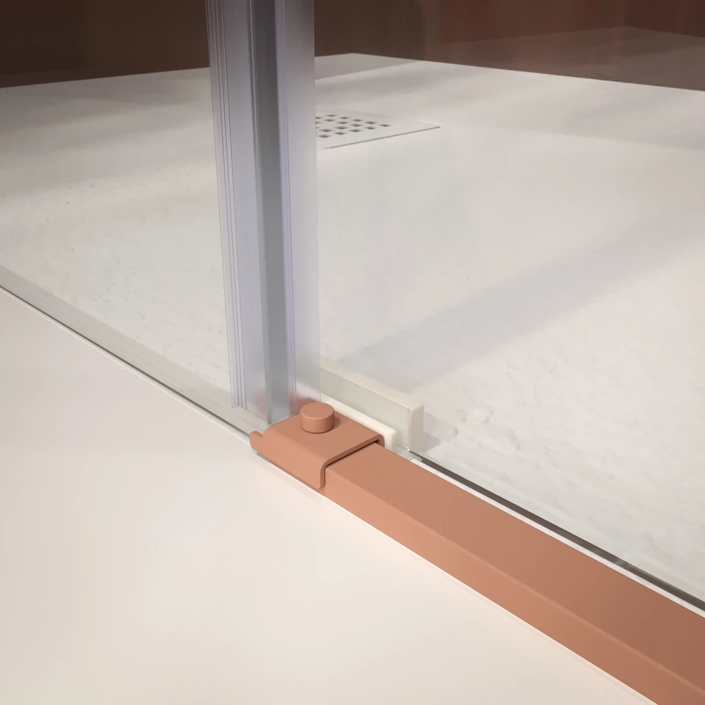 - La mampara se sirve con un junquillo base de estanqueidad que debe pegado en el filo del plato de ducha para garantizar una buena estanqueidad