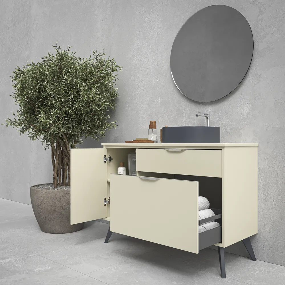 - Mueble de baño con patas KLUM de 2 cajones / 1 puerta de 120 cm a 140cm