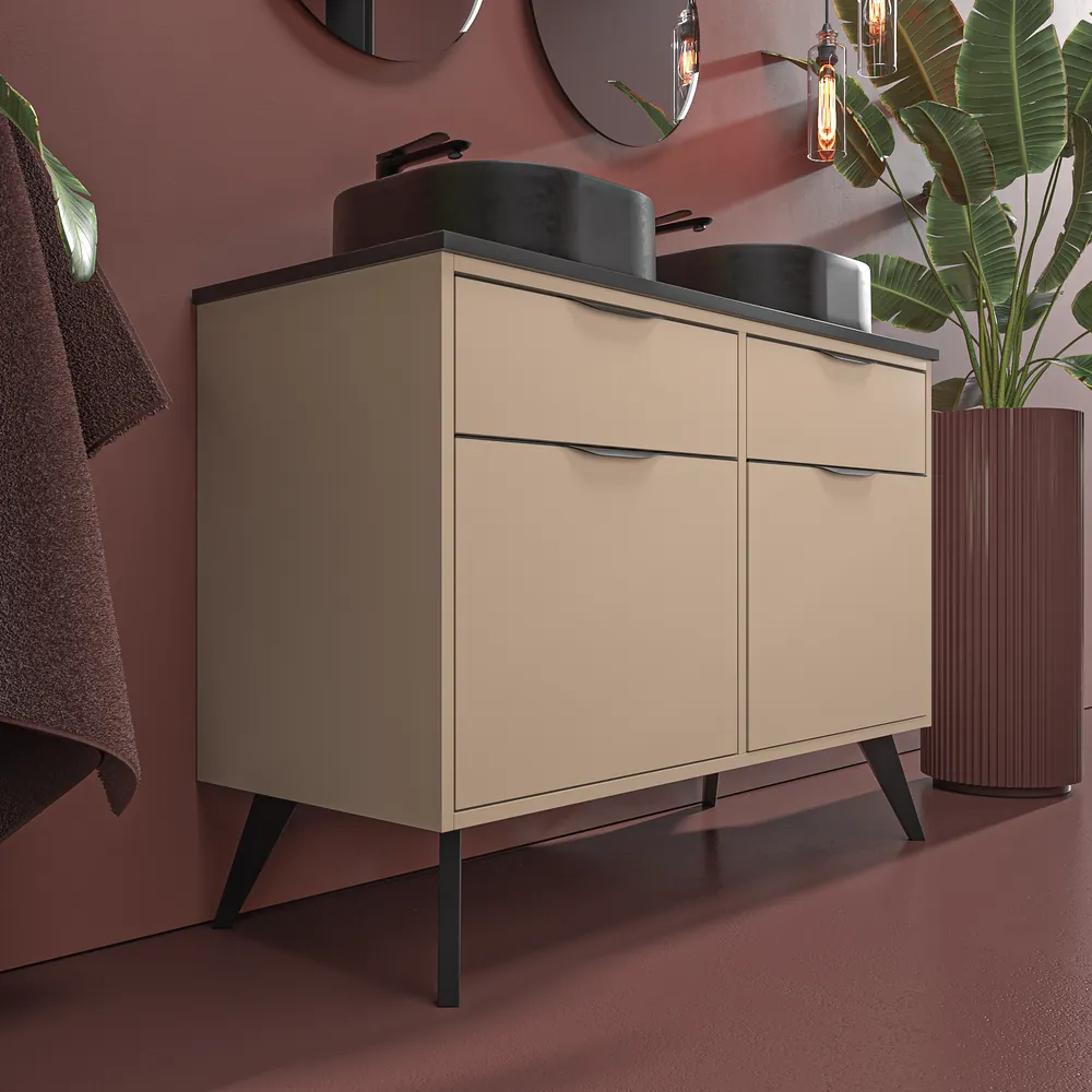 - Mueble de baño con patas KLUM de 2 cajones / 1 puerta de 120 cm a 140 cm