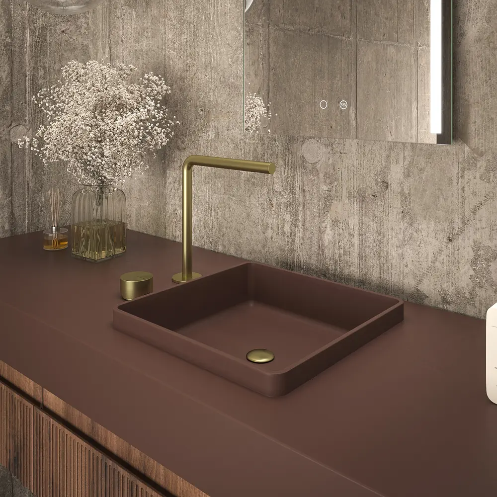 - Lavabo: Encimera con faldón 15 cm con lavabo modelo OSIRIS ,SATET o FOGO semiencastrado fabricado en Solid Surface blanco o color a elegir cualquier de la carta RAL