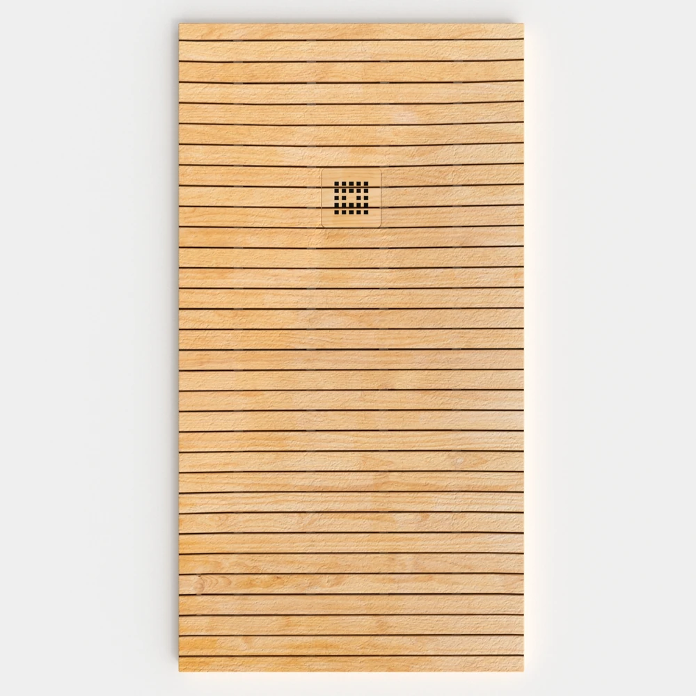 Una línea diferente y creativa ya que simula el acabado de la madera natural. El plato de ducha se puede fabricar a medida .