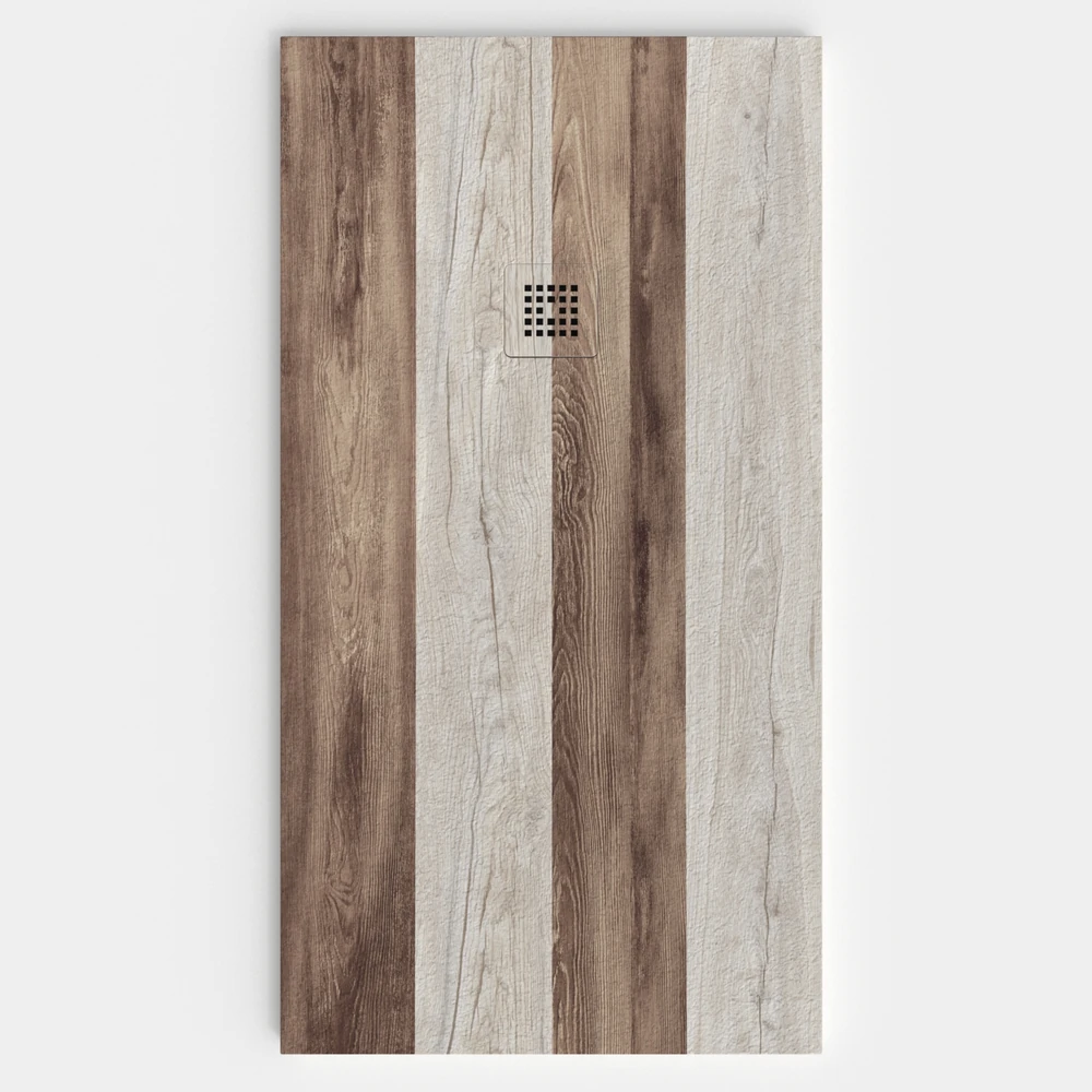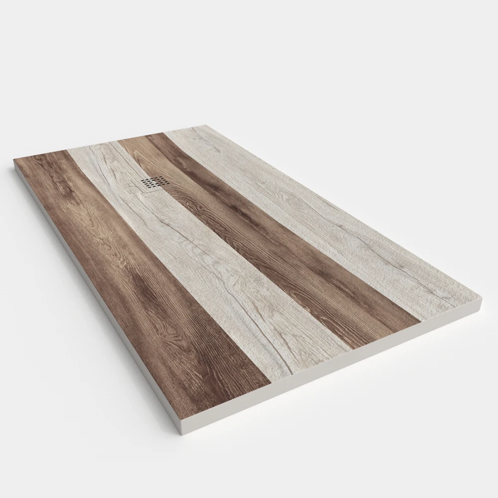 Una línea diferente y creativa ya que simula el acabado de la madera natural. El plato de ducha se puede fabricar a medida .