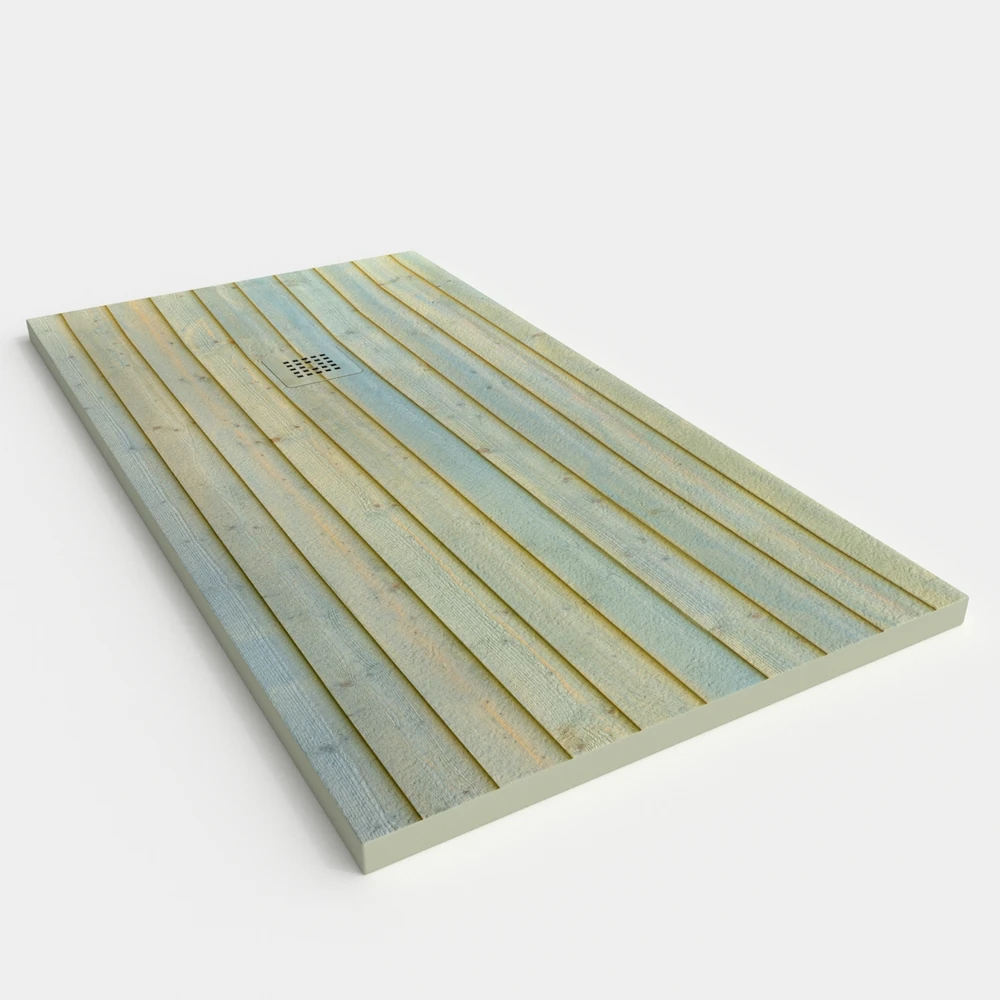 Una línea diferente y creativa ya que simula el acabado de la madera natural. El plato de ducha se puede fabricar a medida .