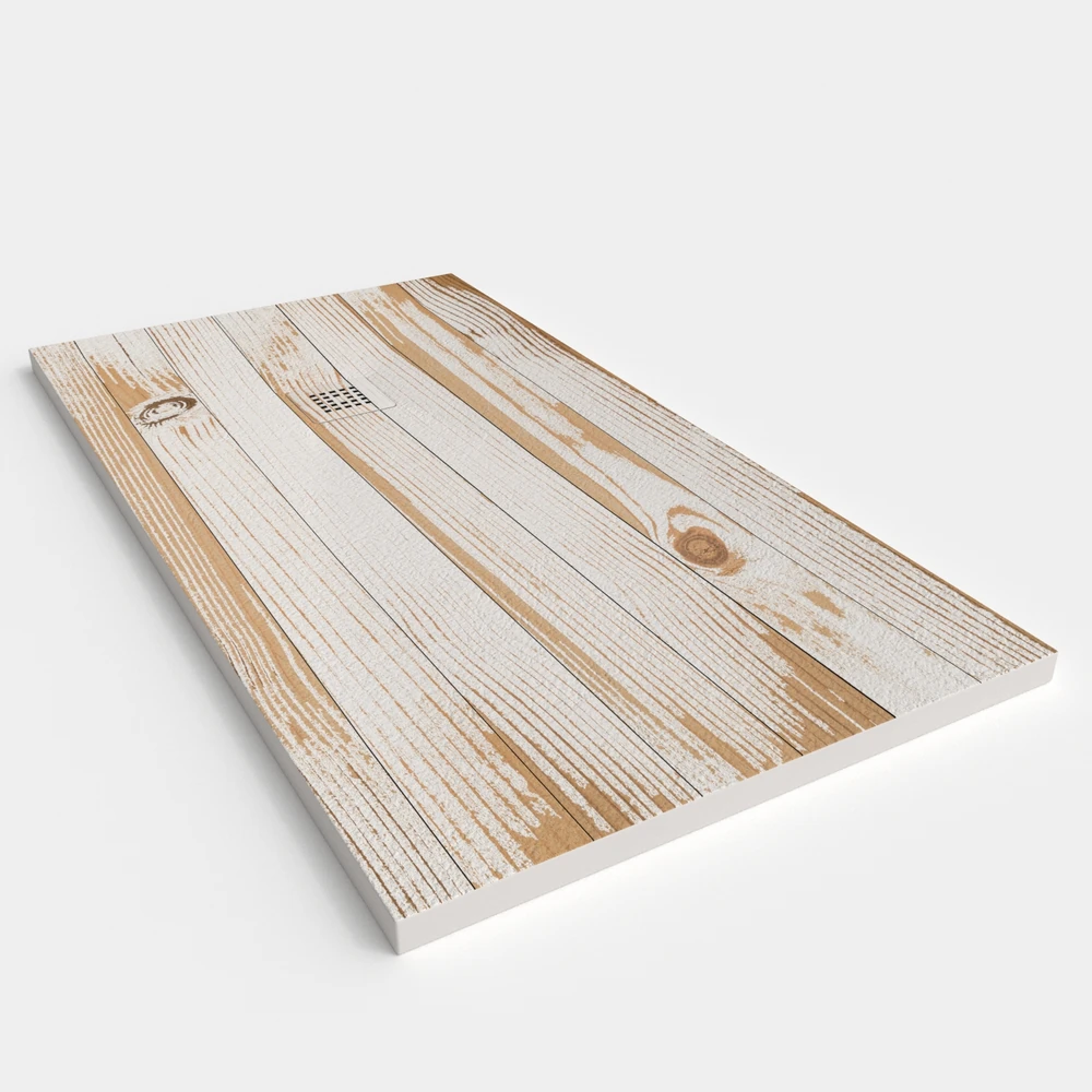 Una línea diferente y creativa ya que simula el acabado de la madera natural. El plato de ducha se puede fabricar a medida .