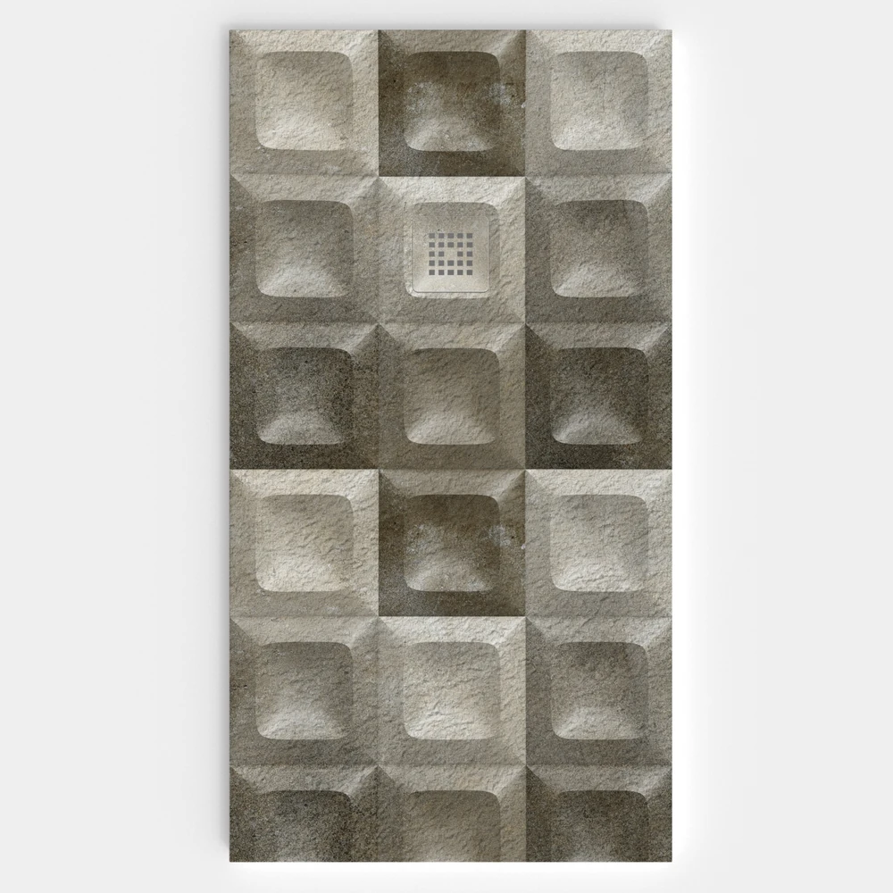 El plato STONE 3D esta  Fabricado de resina y cargas minerales. El revestimiento está realizado con Gel-Coat lo cual hace que la superficie del plato sea no porosa, es decir, nula absorción de agua lo que ayuda a que el plato no presente moho con el paso del tiempo. Esta composición le otorga al plato un grosor de 3 cm con un tacto cálido y agradable. Una línea diferente y creativa ya que simula el acabado del efecto hidráulico en diversos colores. El plato de ducha se puede fabricar a medida .