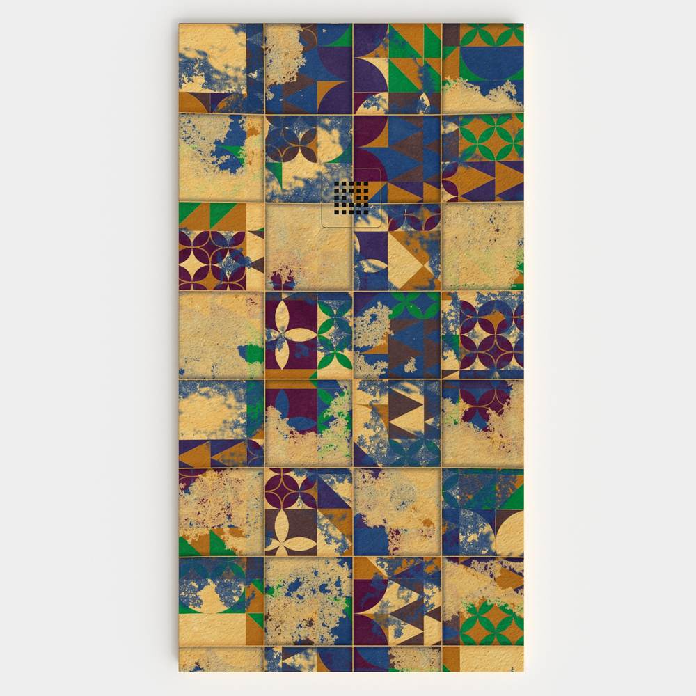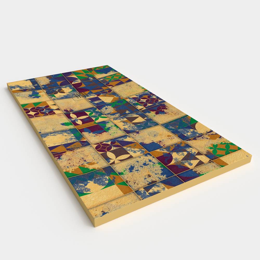 Se realiza sobre una base de masa coloreada en los tonos de nuestra carta de color que más se adecúe al diseño, a la que se aplica en la cara superior un sistema de digitalización propio, un diseño que ofrece infinitas posibilidades de personalización y de durabilidad garantizada gracias a su recubrimiento con GEL COAT.