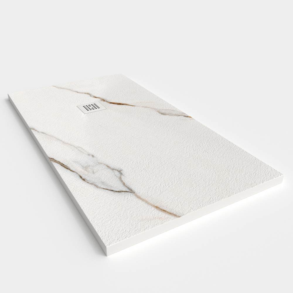 • Plato de ducha resina con carga mineral efecto mármol textura pizarra antideslizante C3 y antibacteriano