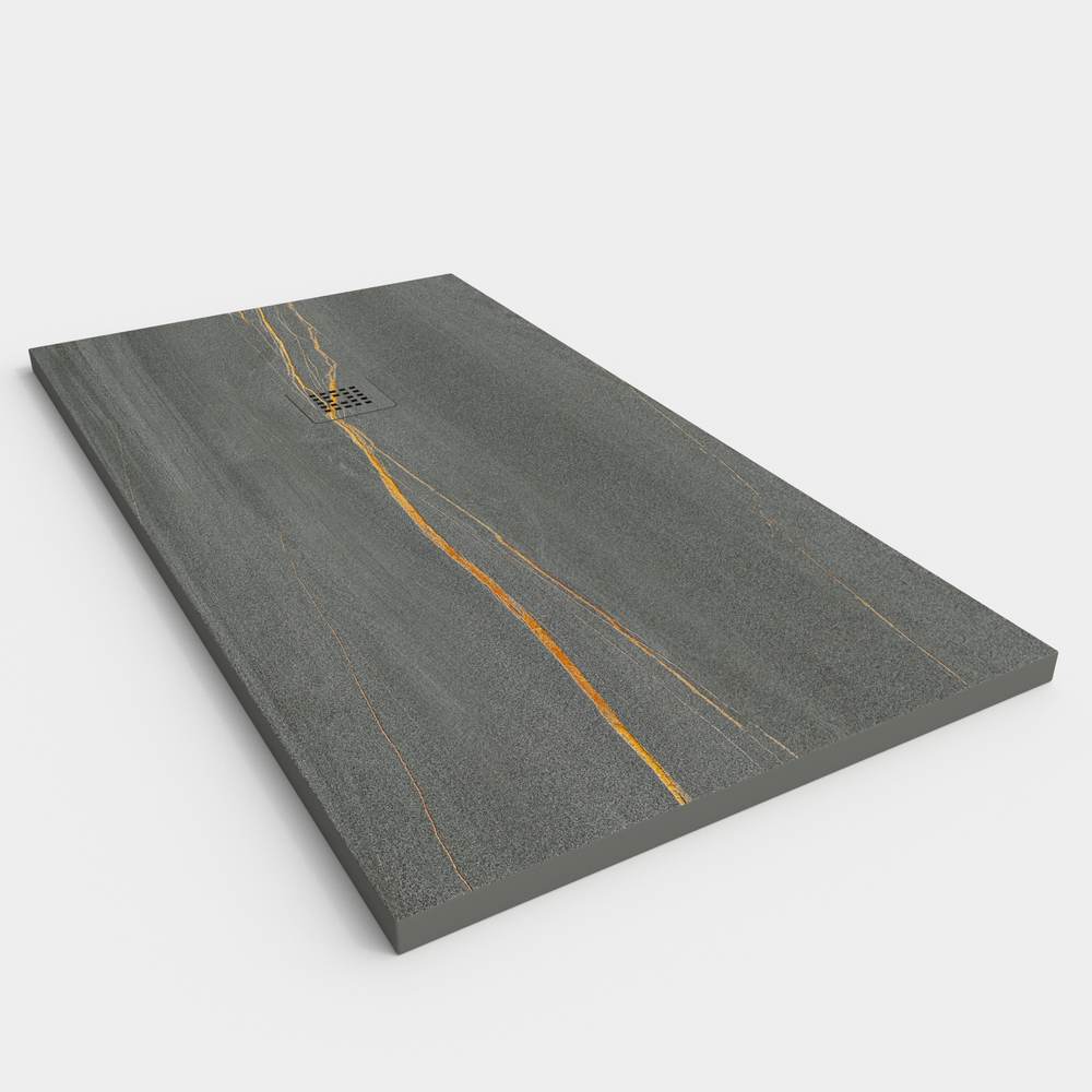 • Plato de ducha resina con carga mineral efecto mármol textura pizarra antideslizante C3 y antibacteriano