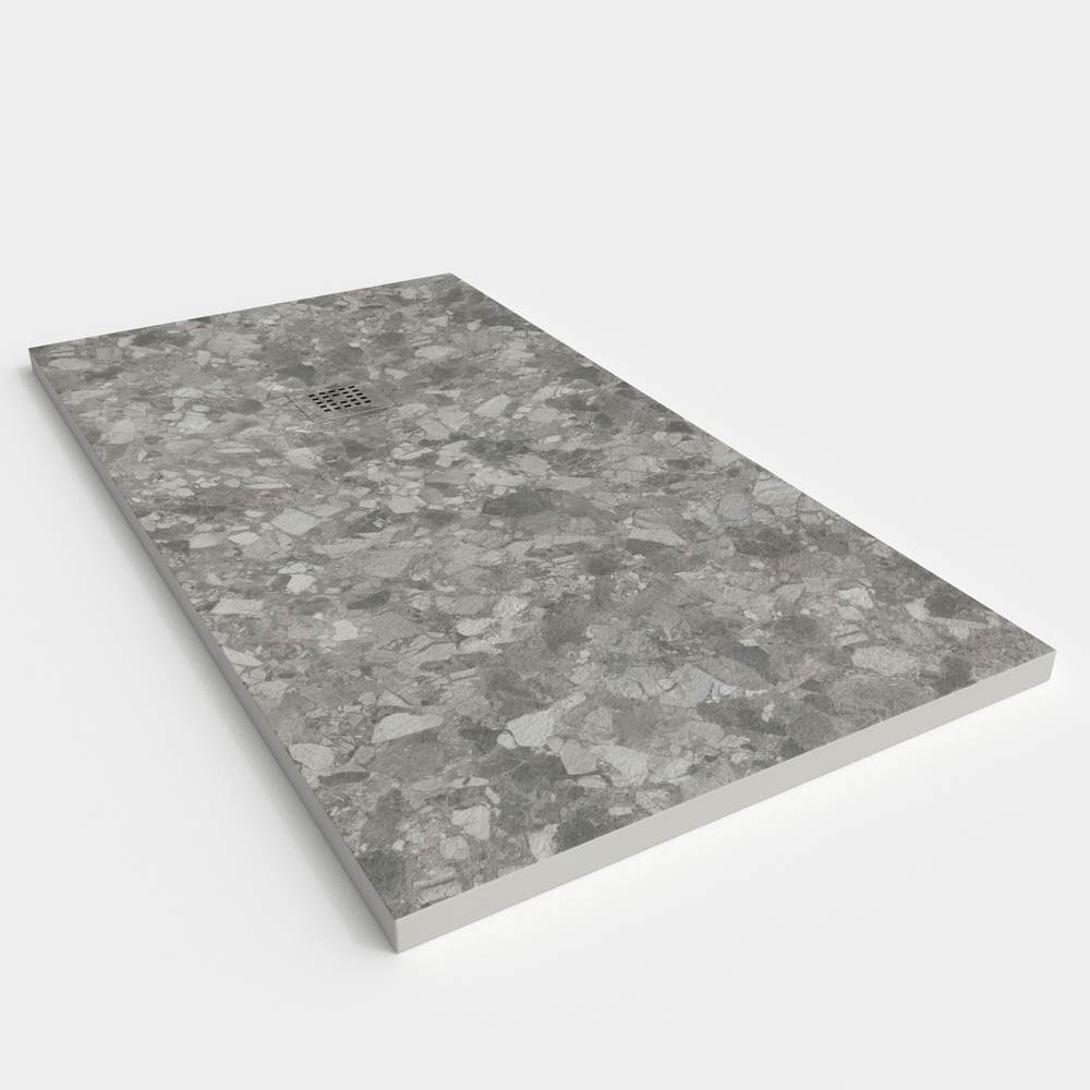 • Plato de ducha resina con carga mineral efecto mármol textura pizarra antideslizante C3 y antibacteriano