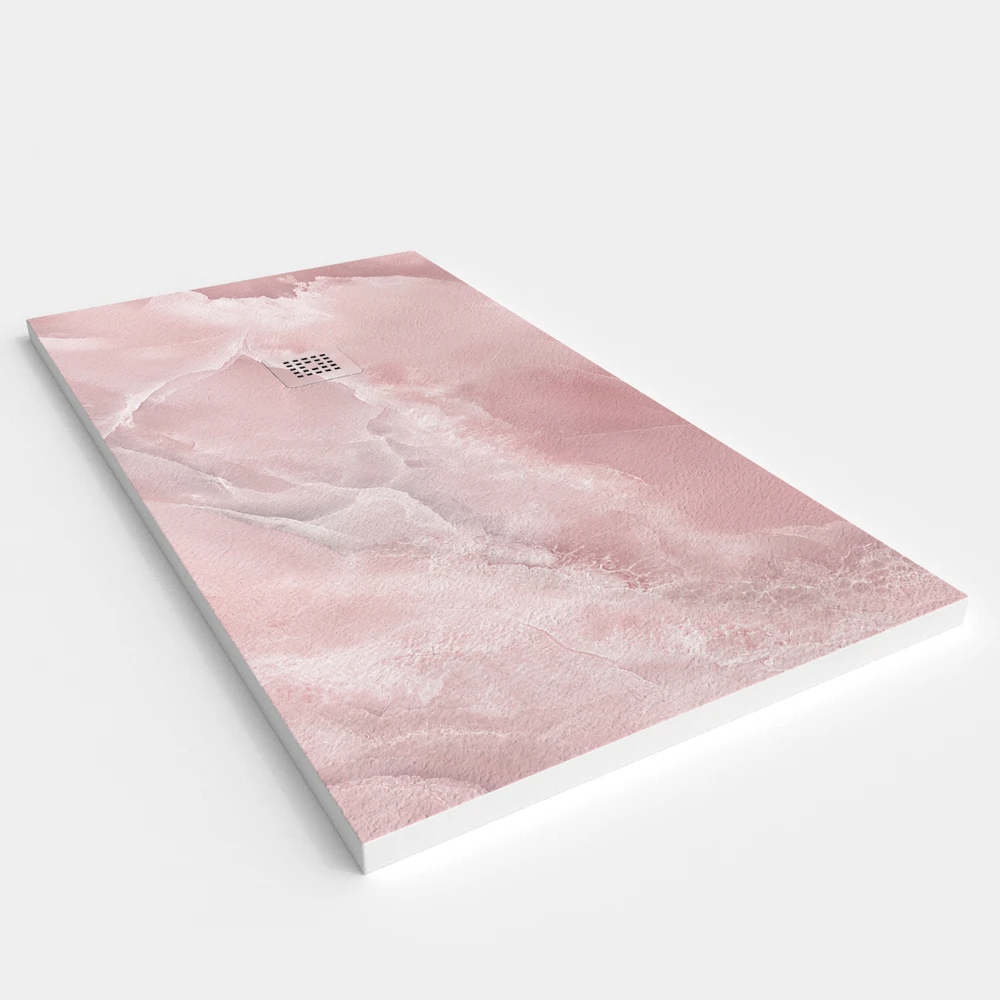 Esta composición le otorga al plato un grosor de 3 cm con un tacto cálido y agradable. Una línea diferente y creativa ya que simula el acabado del mármol en diversos colores. El plato de ducha se puede fabricar a medida.